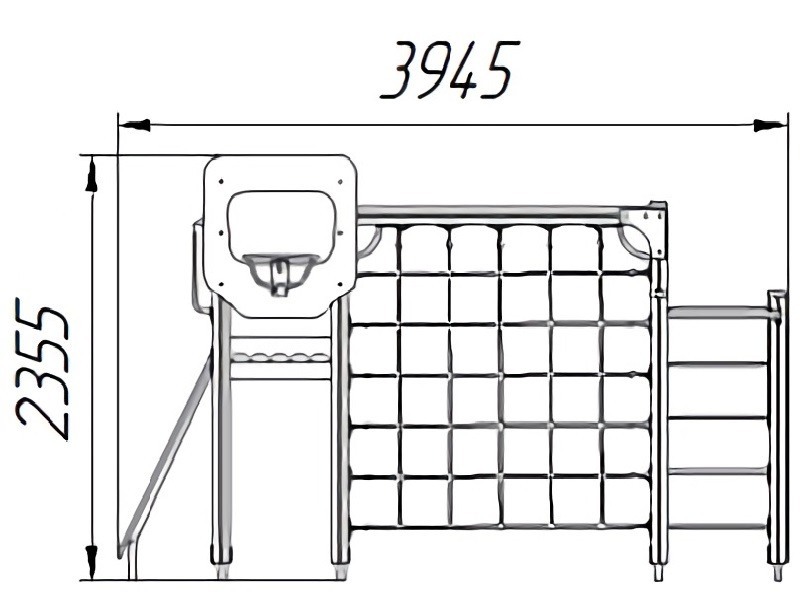 Гимнастический комплекс представляет собой сборноразборную, модульную конструкцию, состоящую из семи опорных столбов, одного закладного бруса, пола, скалолаза, баскетбольного щита с кольцом, сетки, трех гимнастических стенок из распорных турников, диагонального турника, двух усилений, фиксаторов и ручек-держателей. На вершины столбов устанавливаются пластиковые заглушки. Оборудование устанавливается и бетонируется на оцинкованные металлические подпятники. Возраст пользователя от 7 лет.   Опорные столбы и закладной брус выполнены из клееного бруса сечением не менее 100*100 мм. с канавкой посередине. Металлические подпятники выполнены из круглой трубы сечением не менее 42 мм. и листового металла толщиной не менее 4 мм. Пол гимнастического комплекса выполнен из хвойной доски влажностью 7-10% сечением не менее 40*100 мм. Скалолаз выполнен из круглой трубы сечением не менее 21 мм., профильной трубы сечением не менее 40*20 мм., листового металла толщиной не менее 4 мм., влагостойкой фанеры толщиной не менее 18 мм. Распорные турники, диагональный турник, усиления и ручки-держатели выполнены из круглой трубы сечением не менее 27 мм. и листового металла толщиной не менее 4 мм. Баскетбольное кольцо выполнено из круглой трубы сечением не менее 21 мм. и листового металла толщиной не менее 4 мм. Баскетбольный щит выполнен из влагостойкой фанеры толщиной не менее 18 мм. Угловые фиксаторы выполнены из влагостойкой фанеры толщиной не менее 18 мм. Сетка выполнена из полипропиленового каната с металлическим сердечником сечением не менее 16 мм. и специальных крепежных метизов. Все металлические и фанерные элементы выполнены с применением высокоточного оборудования. Деревянные элементы изготавливаются на полуавтоматизированной линии по обработке деревянных изделий.   Все деревянные элементы изготавливаются из хвойной доски влажностью 7-10%, подвергаемой склейке по длине и ширине заготовки с применением клеев зарубежных производителей; изгибы, радиусы и скругленные кромки тщательно отшлифованы и обработаны краской для закрытия торцов JRM (ГОСТ Р 52169-2012 п.4.3.11). Все деревянные элементы проходят окраску в три слоя: первый слой – грунтование заготовки с последующим шлифованием поверхности, второй слой – покраска вододисперсионной краской с последующим шлифованием поверхности, третий слой – финишная покраска. Все деревянные элементы окрашиваются краской финского производителя TEKNOS, соответствующей требованиям санитарных норм и экологической безопасности. Все металлические элементы изготавливаются из круглых труб, с применением горячекатаного листа. Весь применяемый металлопрокат соответствует ГОСТ 8639-82, ГОСТ 535-88, ГОСТ 10705-80, ГОСТ 1577-93. Сварные швы конструкций из металла гладкие (ГОСТ Р 52169-2012 п.4.3.10). Все металлические элементы окрашиваются порошковой краской финского производителя TEKNOS, соответствующей требованиям санитарных норм и экологической безопасности. Для более качественного прокраса все металлические элементы проходят двойной цикл покраски. Все фанерные элементы изготовлены из многослойной влагостойкой, склеенной под прессом и соответствующей ГОСТ 30427-96 фанеры; изгибы, радиусы и скругленные кромки тщательно отшлифованы и обработаны краской для закрытия торцов JRM (ГОСТ Р 52169-2012 п.4.3.11). Окраска фанерных элементов происходит в три слоя: первый
