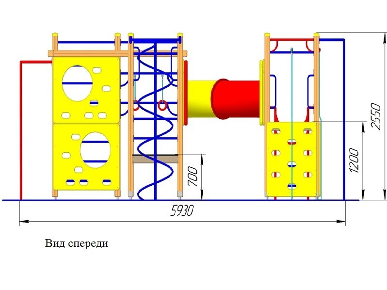 Материалы: Толстостенная труба, клееный брус, полипропиленовый канат, влагостойкая фанера.Весь применяемый металлопрокат соответствует ГОСТ 10705-80, ГОСТ 1577-93. Сварные швы конструкций из металла обработаны и отшлифованы (ГОСТ Р 52169-2012 п.4.3.10). Все металлические элементы окрашиваются глянцевой порошковой краской, соответствующей требованиям санитарных норм и экологической безопасности. Для более качественного прокраса все металлические элементы проходят двойной цикл покраски.Все деревянные элементы изготавливаются из сосновой доски влажностью 7-8%, подвергаемой склейке по длине и ширине заготовки с применением клеев зарубежных производителей; изгибы, радиусы и скругленные кромки тщательно отшлифованы и обработаны грунтом для закрытия торцов.Все фанерные элементы изготовлены из многослойной влагостойкой фанеры ФСФ (ГОСТ 30427-96 ); изгибы, радиусы и скругленные кромки тщательно отшлифованы и обработаны грунтом для закрытия торцов (ГОСТ Р 52169-2012 п.4.3.11). Окраска фанерных и деревянных элементов происходит в три слоя: первый слой — грунтование заготовки с последующим шлифованием поверхности, второй слой — восстановление грунта после шлифовки, третий слой — финишная покраска. Все фанерные и деревянные элементы окрашиваются атмосферостойкими красками, устойчивыми к ультрафиолету , истиранию и соответствующими требованиям санитарных норм и экологической безопасности.Крепеж оцинкован.Выступающие части резьбовых соединений закрыты пластиковыми заглушками (ГОСТ Р 52169-2012 п. 4.3.9).Крепление элементов оборудования исключает возможность их демонтажа без применения инструментов (ГОСТ Р 52169-2012 п. 4.3.13).Изделие сопровождается: а) техническим паспортом завода-изготовителя (ГОСТ Р 52301-2004 п. 5), в котором указано предназначение, номер изделия, правила безопасной эксплуатации и схема сборки.б) комплектом крепежа для сборки и монтажа.Сборочно-монтажные работы выполняются с соблюдением требований национальных стандартов по установке детского игрового оборудования и согласно схемам монтажа предприятия-изготовителя.