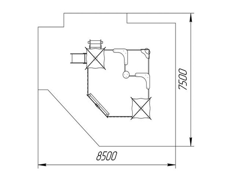 Песочный дворик имеет сборную конструкцию. Оборудование включает в себя шестнадцать опорных столбов, две площадки, скат горки с высотой стартовой площадки 600мм, лестничный марш с перилами, комплект игровых счет, две скамьи с упорами, распорные турники, две шатровые крыши, арку с медведем, борта песочницы, декоративная ель со столом и фиксатором, ограждения с декоративными накладками, два угловых и круглый столы. На вершины столбов устанавливаются пластиковые заглушки. Оборудование устанавливается и бетонируется на оцинкованные металлические подпятники. Возраст пользователя от 3 лет. Опорные столбы и закладной брус выполнены из клееного бруса сечением не менее 100мм*100мм с канавкой посередине. Накладка на закладной брус выполнена из ламинированной фанеры с противоскользящим покрытием толщиной не менее 24мм. Площадки выполнены из хвойной доски влажностью 7-10% сечением не менее 40*100мм и влагостойкой фанеры толщиной не менее 15мм. Металлические подпятники, выполнены из круглой трубы сечением не менее 42мм и листового металла толщиной не менее 4мм. Подпятники к лестничному маршу выполнены из профильной трубы сечением не менее 40мм*20мм и листового металла толщиной 4мм. Лестничный марш выполнен из хвойной доски влажностью 7-10% сечением не менее 140мм*40мм и ламинированной фанеры с противоскользящим покрытием толщиной не менее 15мм. Перила к лестничному маршу выполнены из хвойной доски влажностью 7-10% сечением не менее 140мм*45мм, и влагостойкой фанеры толщиной не менее 24мм. Скат горки выполнен из фанеры толщиной не менее 24мм и единого листа нержавеющей стали толщиной не менее 1,5мм. Скат горки имеет металлический каркас, выполненный из профильной трубы сечением не менее 20мм*40мм. Стартовый участок горки имеет ограждения, выполненные из фанеры толщиной 24мм и имеет турник – ограничитель, выполненный из круглой трубы сечением не менее 27мм и листового металла толщиной 4мм. Комплект игровых счет выполнен из влагостойкой фанеры толщиной не менее 24мм и круглой трубы сечением не менее 21мм. Шатровые крыши выполнены из влагостойкой фанеры толщиной не менее 15мм. Скамьи, арка с медведем, декоративная ель со столом и фиксатором, ограждения, угловые и круглый столы выполнены из влагостойкой фанеры толщиной не менее 24мм. Декоративные накладки в виде цветов на ограждения выполнены из влагостойкой фанеры толщиной не менее 9мм. Борта песочницы выполнены из хвойной доски влажностью 7-10% сечением не менее 140мм*40мм. Распорные турники выполнены из круглой трубы сечением не менее 27мм и листового металла толщиной 4мм. Все металлические элементы выполнены с применением высокоточного оборудования. Деревянные и фанерные элементы изготавливаются на полуавтоматизированной линии по обработке х изделий. Все деревянные элементы изготавливаются из хвойной доски влажностью 7-10%, подвергаемой склейке по длине и ширине заготовки с применением клеев зарубежных производителей; изгибы, радиусы и скругленные кромки тщательно отшлифованы и обработаны краской для закрытия торцов JRM (ГОСТ Р 52169-2003 п.4.3.11). Все деревянные элементы проходят окраску в три слоя: первый слой – грунтование заготовки с последующим шлифованием поверхности, второй слой – покраска вододисперсионной краской с последующим шлифованием поверхности, третий слой – финишная покраска. Все деревянные элеме