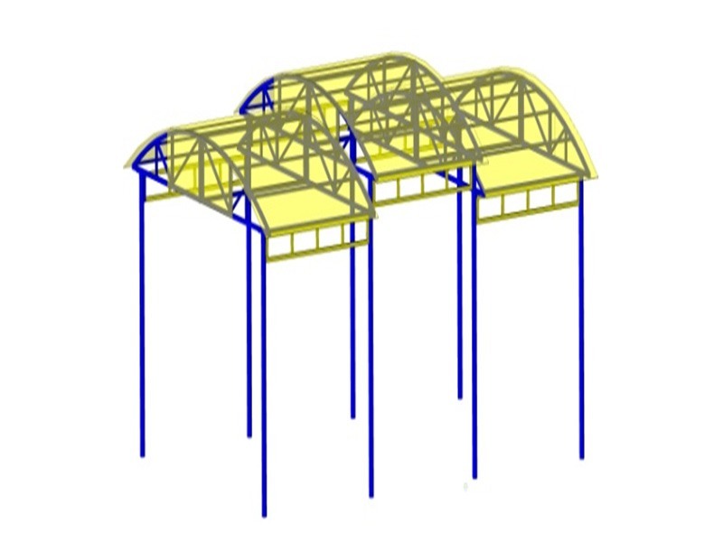 Теневой навес имеет сборную конструкцию. Оборудование включает в себя восемь опорных столбов, шесть соединительных рамок и шесть полуферм. Материал покрытия крыши- сотовый поликарбонат. Оборудование устанавливается и бетонируется в грунт.   Опорные столбы выполнены из круглой толстостенной трубы диаметром не менее 76 мм, толстостенного равнополочного уголка сечением не менее 40мм*40мм и толстостенной профильной трубы сечением не менее 20мм*40мм. Соединительные рамки выполнены из толстостенной профильной трубы сечением не менее 20мм*40мм. Полуфермы выполнены из толстостенной профильной трубы сечением не менее 40мм*40мм и 20мм*40мм. Покрытие крыши из сотового поликарбоната толщиной не менее 10мм. Все металлические элементы выполнены с применением высокоточного оборудования. Все металлические элементы изготавливаются из круглых труб, с применением горячекатаного листа. Весь применяемый металлопрокат соответствует ГОСТ 10705-80, ГОСТ 1577-93, ГОСТ 8509-93, ГОСТ 8639-82. Сварные швы конструкций из металла гладкие (ГОСТ Р 52169-2012 п.4.3.10). Все металлические элементы окрашиваются порошковой краской финского производителя TEKNOS, соответствующей требованиям санитарных норм и экологической безопасности. Для более качественного прокраса все металлические элементы проходят двойной цикл покраски. Крепеж оцинкован. Выступающие части резьбовых соединений закрыты пластиковыми заглушками (ГОСТ Р 52169-2012 п. 4.3.9). Крепление элементов оборудования исключает возможность их демонтажа без применения инструментов (ГОСТ Р 52169-2012 п. 4.3.13). Изделие сопровождается: а) техническим паспортом завода-изготовителя (ГОСТ Р 52301-2004 п. 5), в котором указано предназначение, номер изделия, правила безопасной эксплуатации и схема сборки. б) комплектом крепежа для сборки и монтажа. Сборочно-монтажные работы выполняются с соблюдением требований национальных стандартов по установке детского игрового оборудования и согласно схемам монтажа предприятия-изготовителя.