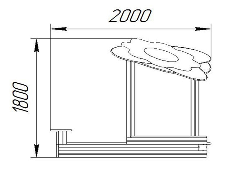 Песочница квадратной формы с навесом в виде цветка и столами. Песочница включает в себя шесть опорных столбов, четыре борта, упор, три стола и закладные. Песочница устанавливается и бетонируется с помощью металлических закладных. Возраст пользователя от 3 до 6 лет.   Сборка каркаса песочницы осуществляется путем крепления бортов песочницы к опорным столбам из клееного бруса сечением не менее 100мм*100мм с канавкой посередине с помощью металлических опор, выполненных из толстостенного уголка сечением 40мм* и листового металла толщиной не менее 4мм. Борта, столы и навес выполнены из влагостойкой фанеры толщиной не менее 15мм. Деревянные борта изготовлены из клееного бруса сечением не менее 100мм*100мм с канавкой посередине. Упоры выполнены из круглой трубы сечением не менее 27мм и листового металла толщиной 4мм. Все металлические элементы изготовлены с применением высокоточного оборудования. Деревянные и фанерные элементы выполнены на полуавтоматизированной линии по обработке изделий.   Все деревянные элементы изготавливаются из хвойной доски влажностью 7-10%, подвергаемой склейке по длине и ширине заготовки с применением клеев зарубежных производителей; изгибы, радиусы и скругленные кромки тщательно отшлифованы и обработаны краской для закрытия торцов JRM (ГОСТ Р 52169-2003 п.4.3.11). Все деревянные элементы проходят окраску в три слоя: первый слой – грунтование заготовки с последующим шлифованием поверхности, второй слой – покраска вододисперсионной краской с последующим шлифованием поверхности, третий слой – финишная покраска. Все деревянные элементы окрашиваются краской финского производителя TEKNOS, соответствующей требованиям санитарных норм и экологической безопасности. Все металлические элементы изготавливаются из круглых труб, с применением горячекатаного листа. Весь применяемый металлопрокат соответствует ГОСТ 10705-80, ГОСТ 1577-93. Сварные швы конструкций из металла гладкие (ГОСТ Р 52169-2012 п.4.3.10). Все металлические элементы окрашиваются порошковой краской финского производителя TEKNOS, соответствующей требованиям санитарных норм и экологической безопасности. Для более качественного прокраса все металлические элементы проходят двойной цикл покраски. Все фанерные элементы изготовлены из многослойной влагостойкой, склеенной под прессом и соответствующей ГОСТ 30427-96 фанеры; изгибы, радиусы и скругленные кромки тщательно отшлифованы и обработаны краской для закрытия торцов JRM (ГОСТ Р 52169-2012 п.4.3.11). Окраска фанерных элементов происходит в три слоя: первый слой – грунтование заготовки с последующим шлифованием поверхности, второй слой – покраска двухкомпонентной краской с последующим шлифованием поверхности, третий слой – финишная покраска. Все фанерные элементы окрашиваются краской финского производителя TEKNOS, соответствующей требованиям санитарных норм и экологической безопасности.   Крепеж оцинкован. Выступающие части резьбовых соединений закрыты пластиковыми заглушками (ГОСТ Р 52169-2012 п. 4.3.9). Крепление элементов оборудования исключает возможность их демонтажа без применения инструментов (ГОСТ Р 52169-2012 п. 4.3.13). Изделие сопровождается: а) техническим паспортом завода-изготовителя (ГОСТ Р 52301-2013 п. 5), в котором указано предназначение, номер изделия, правила безопасной эксплуатации и схема сборки. б) комплектом крепежа для сб
